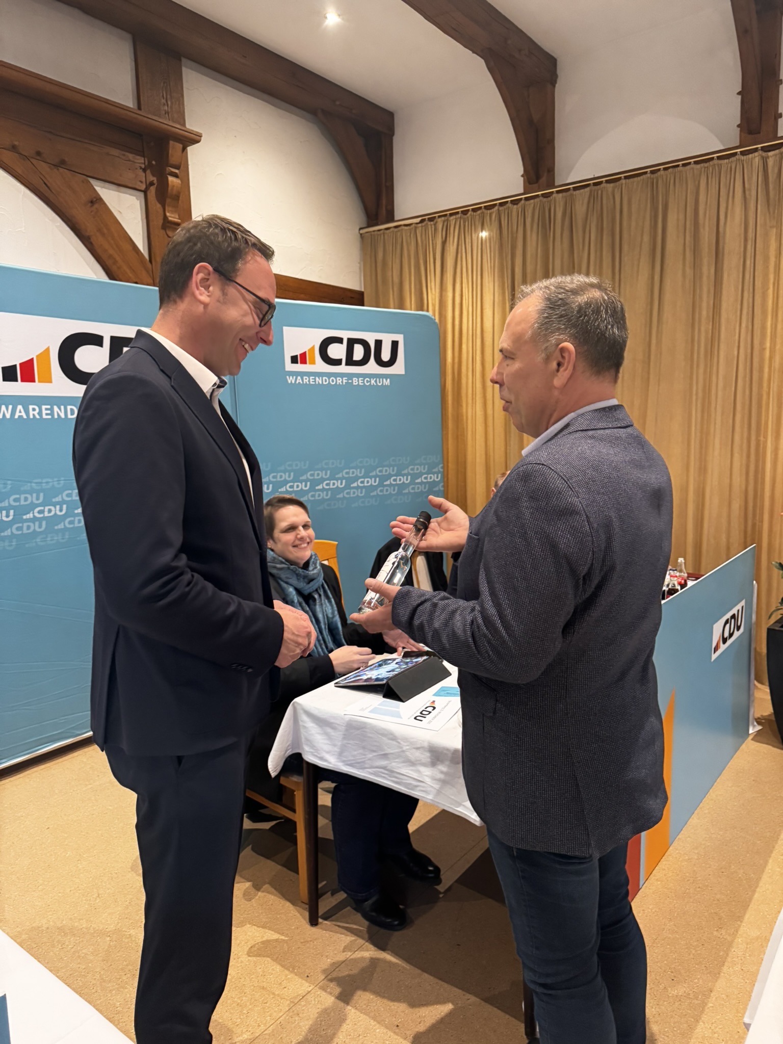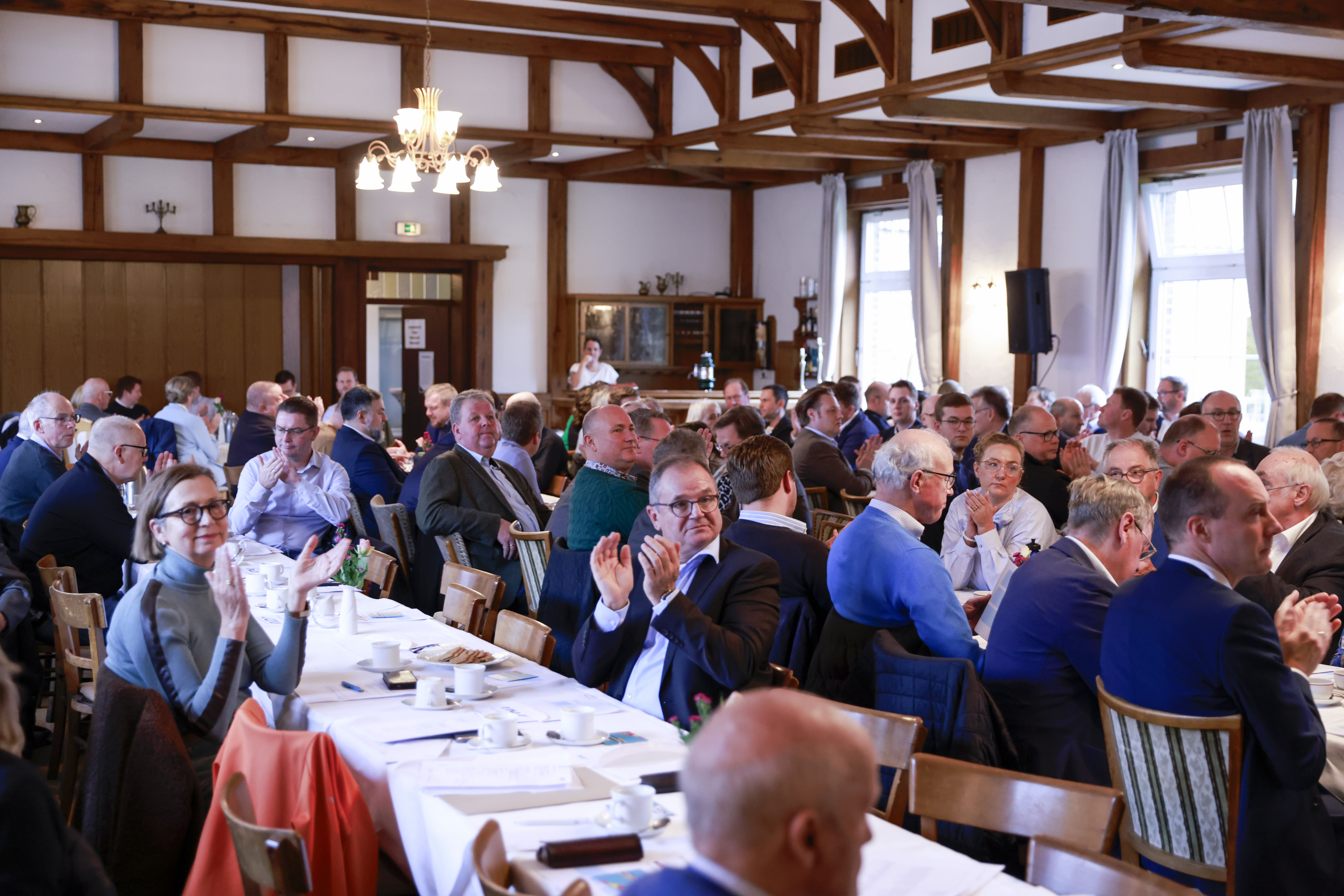 Jemand, der sich schon seit vielen Jahrzehnten für die regionale CDU-Familie engagiert, ist Ulrich Bösl: Für seine 50-jährige Mitgliedschaft in der Kreis-CDU, davon 46 Jahre im Kreisvorstand und zusätzlich in vielen weiteren Gremien, erhielt der Wadersloher auf dem Kreisparteitag die Ehrenmedaille der CDU Deutschlands. „Du warst immer eine verlässliche Bank“, unterstrich Höner bei der Laudatio. Nur ungern verabschiede er ihn aus der Vorstandsarbeit. Bösl selbst nutzte die Gelegenheit für einen Rückblick auf „Zeiten, die manchmal auch schwierig waren“ und richtete einen eindringlichen Appell an die Anwesenden: „Die CDU war immer die Partei der christlich-demokratischen Werte – dem sind wir verpflichtet“, betonte er. „Haltet zusammen, haltet die Brandmauer, auch wenn es nicht immer leicht ist. Wir sind seit 1948 der Stabilisator Deutschlands – und das muss auch so bleiben!“
