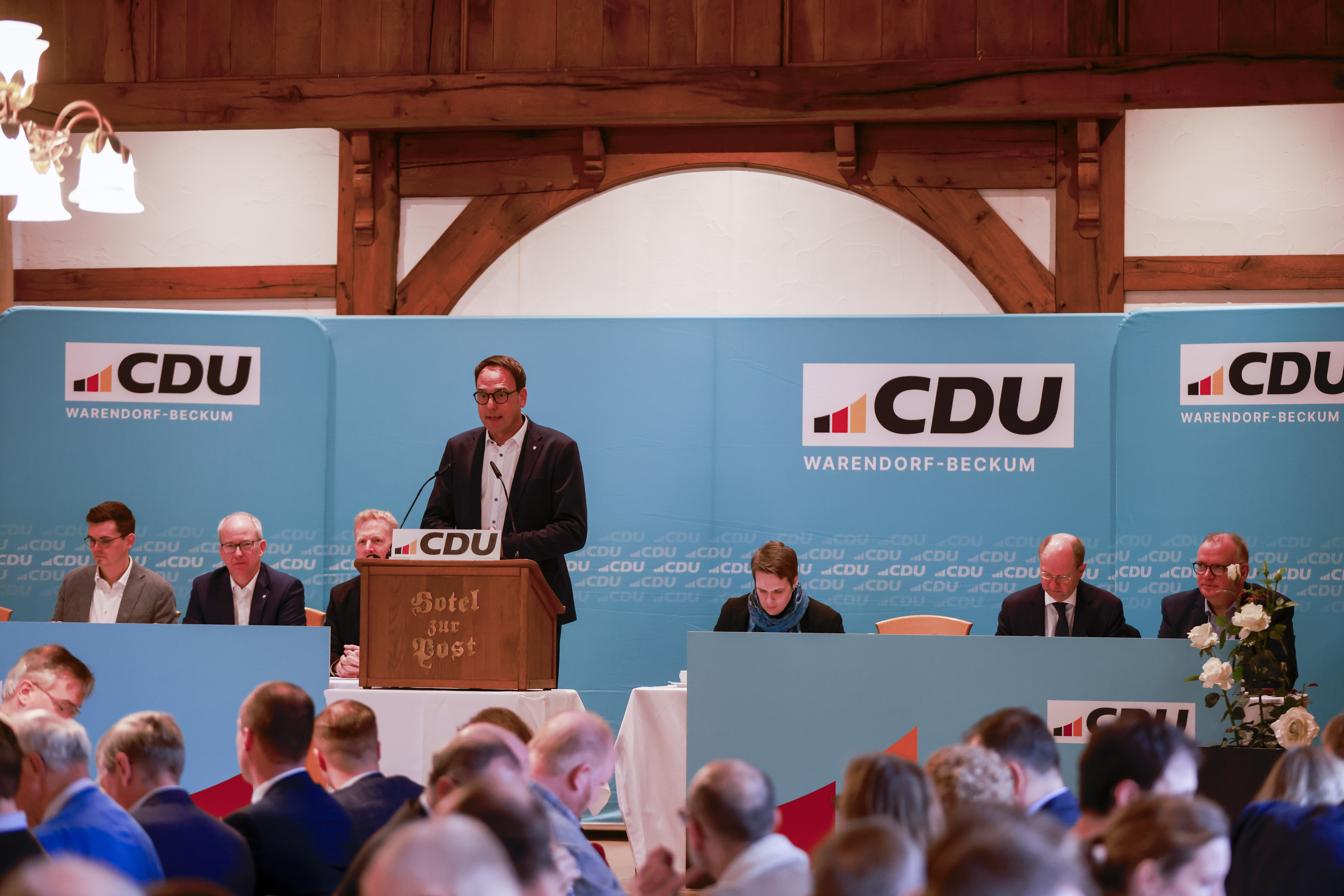 Die CDU im Kreis Warendorf habe sich als verlässliche politische Kraft bewiesen, sagte Höner in Hinblick auf die guten Ergebnisse bei der Bundestagswahl, wo Henning Rehbaum MdB mit über 41 Prozent der Stimmen sein Direktmandat verteidigt hatte, sowie bei der Kommunalwahl. Hier war Landrat Dr. Olaf Gericke zum vierten Mal mit 64,6 Prozent Stimmenanteil im Amt bestätigt worden; zusätzlich zu den beiden wiedergewählten Bürgermeistern Sebastian Seidel (Everswinkel) und Josef Uphoff (Sassenberg) sind mit Matthias Harman in Ahlen, Markus Wiewel in Drensteinfurt und Marc Berendes in Ennigerloh drei neue CDU-Bürgermeister in die Rathäuser eingezogen. Dazu erzielten die Christdemokraten überzeugende Ergebnisse in den Räten und im Kreistag – das beweise: „Der Kreis Warendorf ist CDU-Land!“ Markus Höner dankte allen Mitgliedern, die mit ihrem Einsatz zu diesen Erfolgen beigetragen hatten.